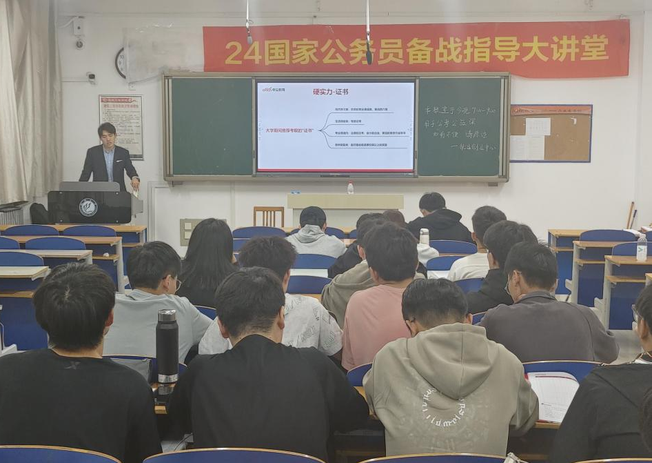 为普及考公知识,增强学生对考情的全面了解,提升毕业生就业竞争力,进一步推进高质量就业,10月25日,色情网站 举办“乘风破浪,奋楫争先”公务员考试公开课。本次公开课邀请中公教育讲师主讲,色情网站 2021级、2020级部分学生参加。