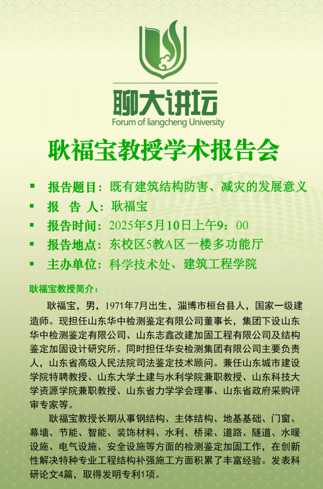 聊大讲坛:既有建筑结构防害、减灾的发展意义