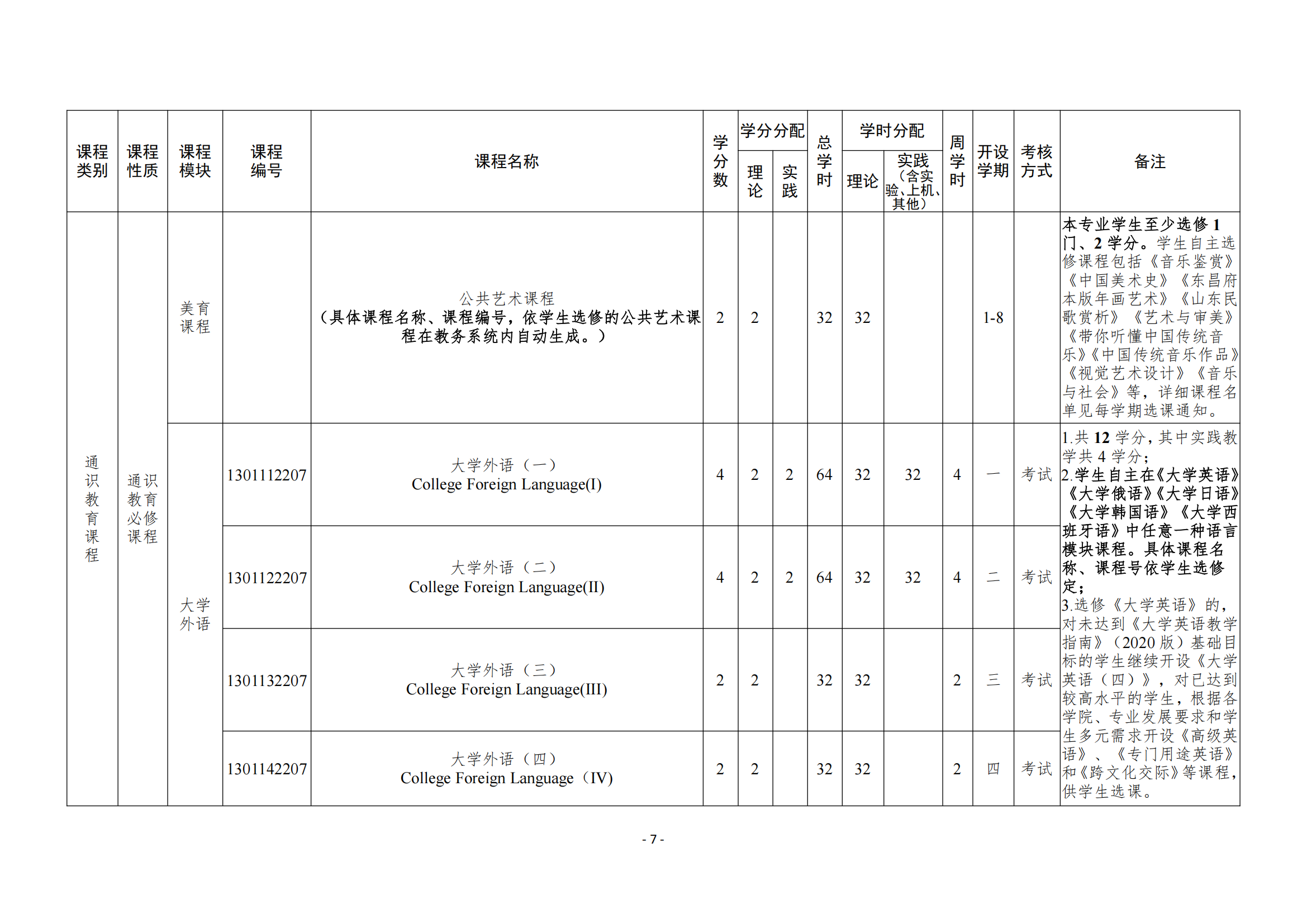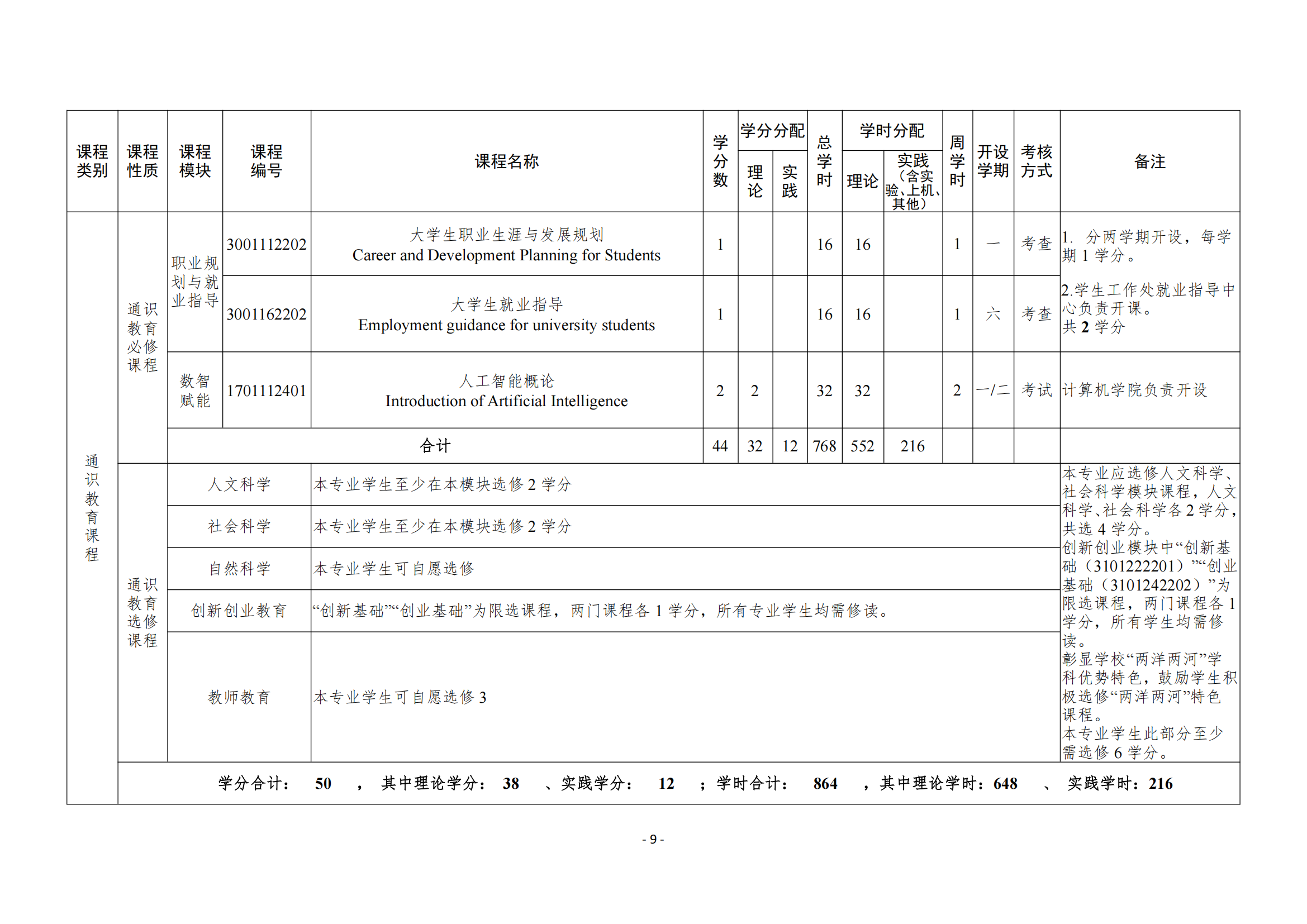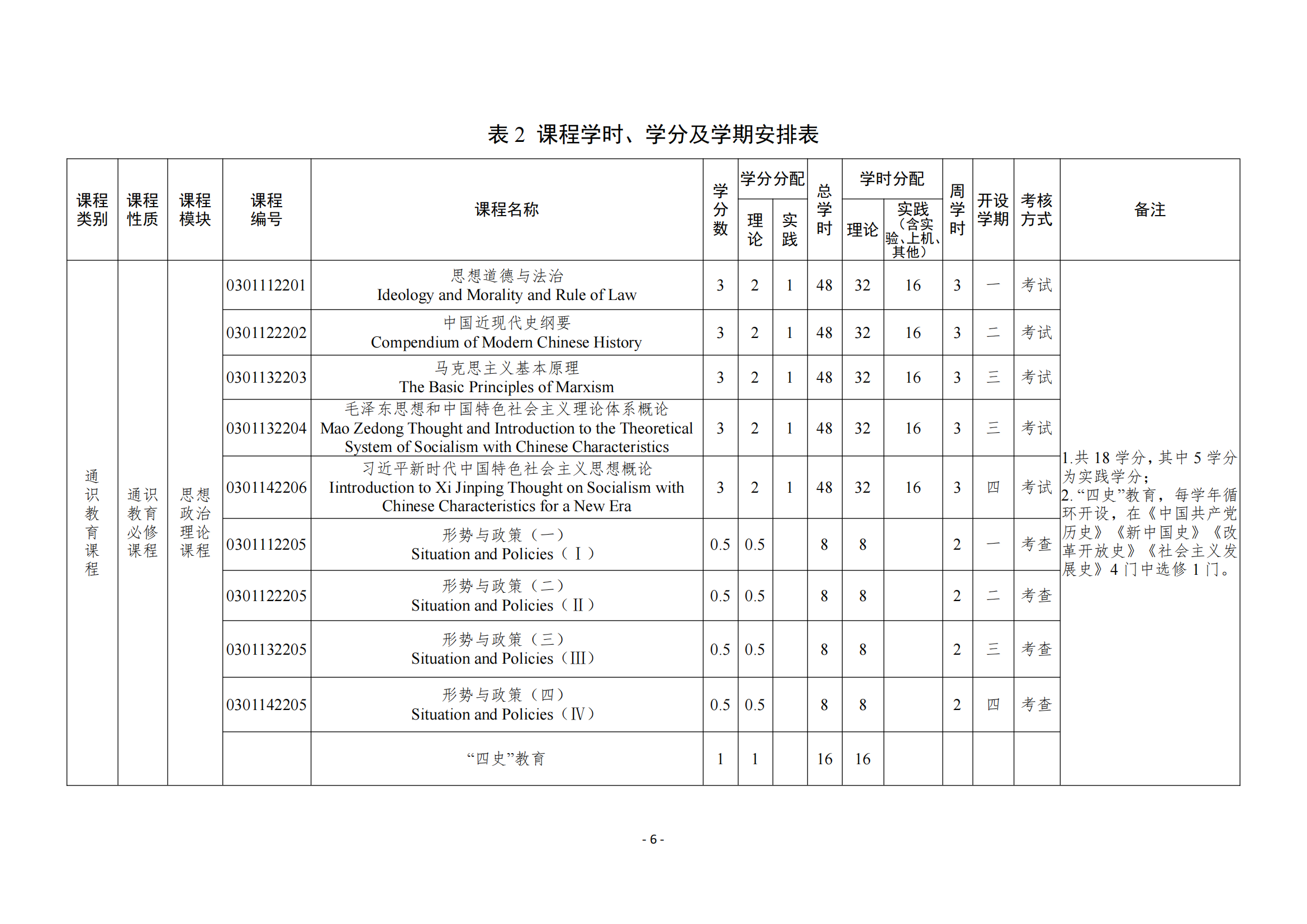 - 课程的学时、学分及学期安排(见表2)