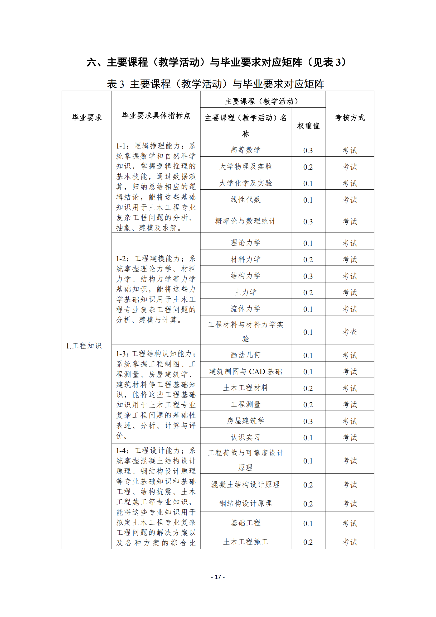 1-3:工程结构认知能力;系统掌握工程制图、工程测量、房屋建筑学、建筑材料等工程基础知识,能将这些工程基础知识用于土木工程专业复杂工程问题的基础性表述、分析、计算与评价。