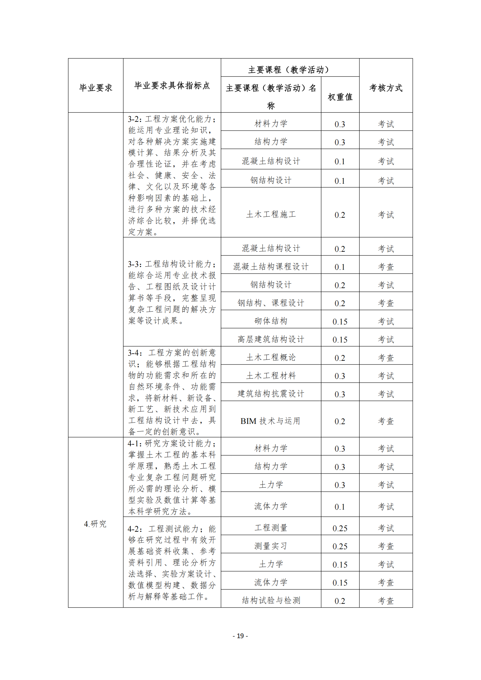 4-1:研究方案设计能力;掌握土木工程的基本科学原理,熟悉土木工程专业复杂工程问题研究所必需的理论分析、模型实验及数值计算等基本科学研究方法。