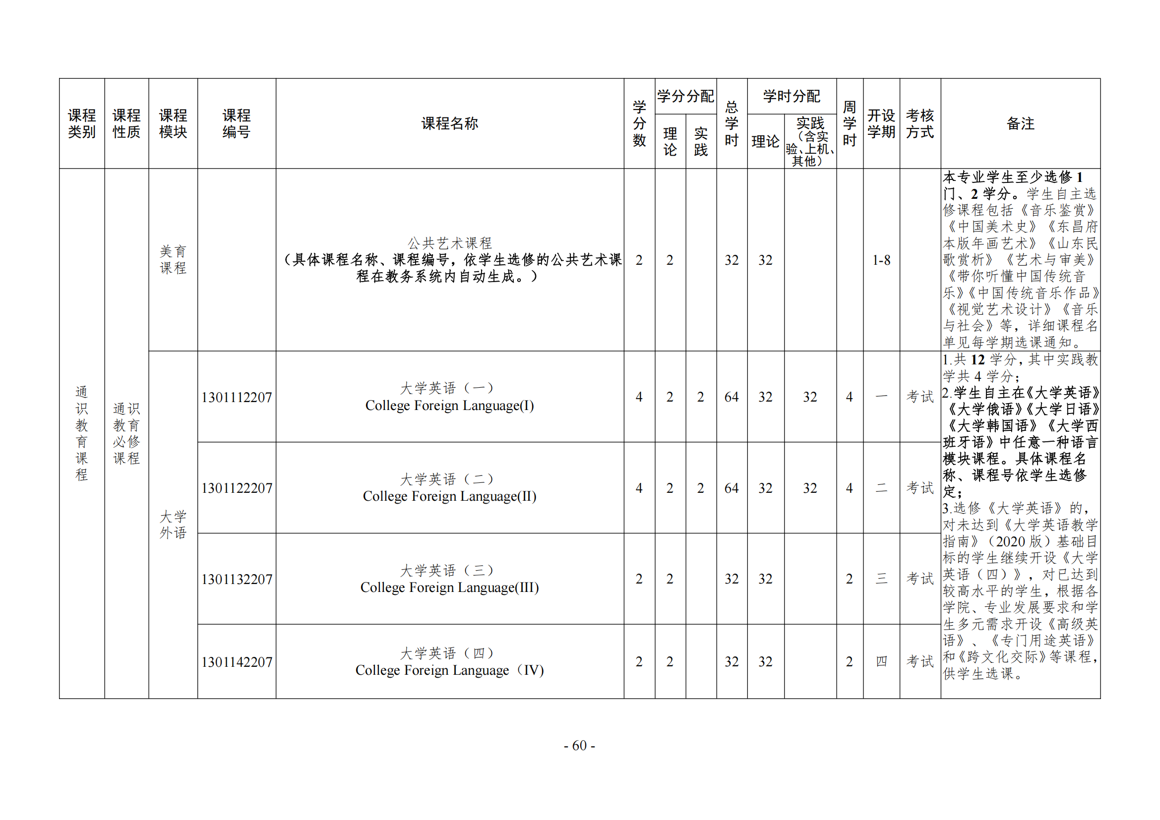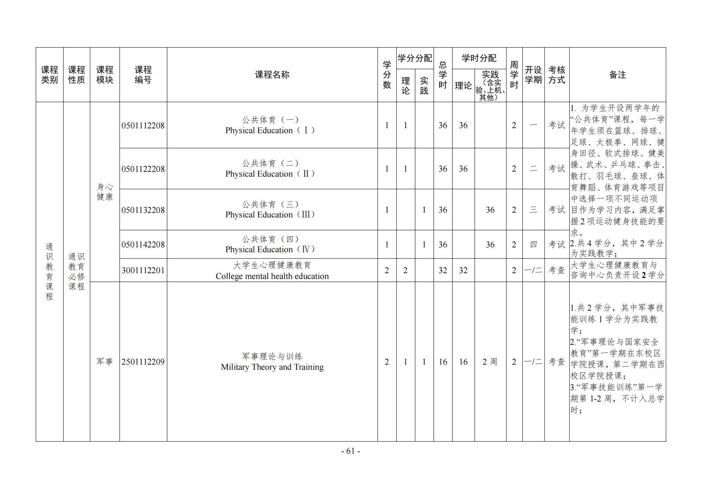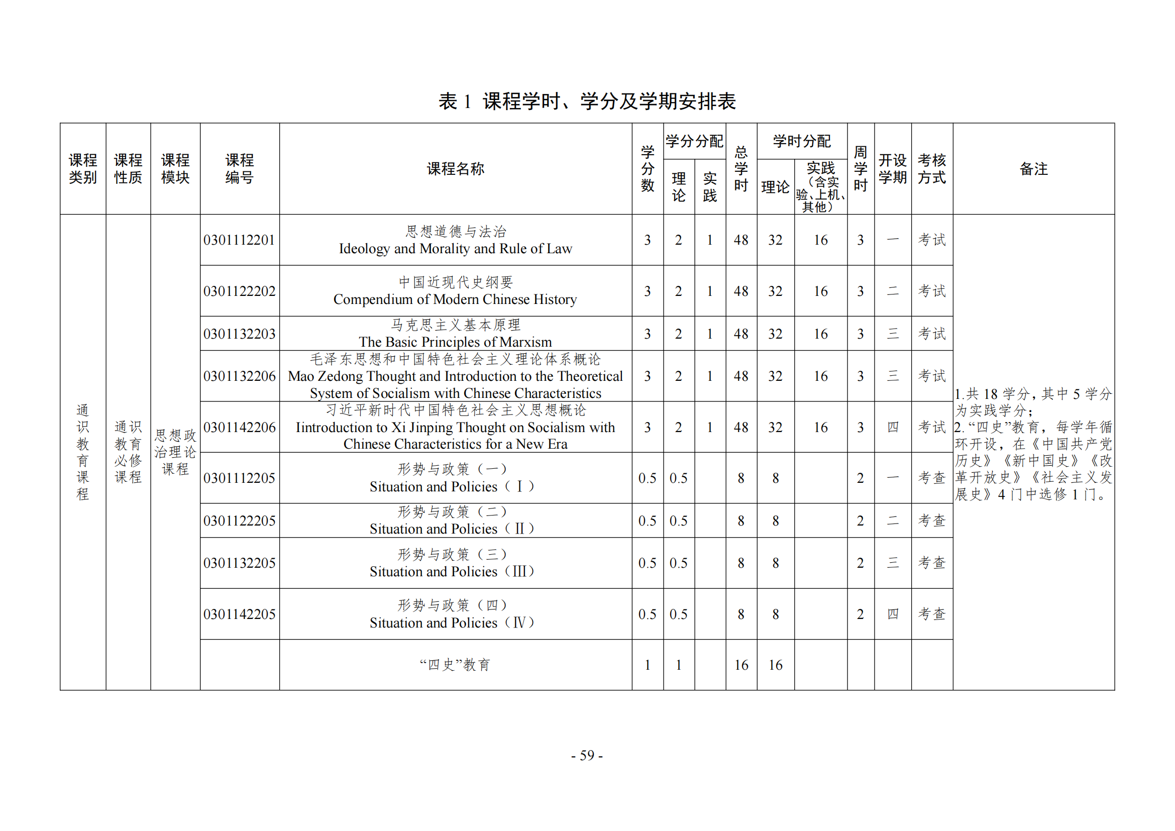 本专业标准学制为四年,学校实行学分制下的弹性学制。计划总学时为 2416 学时,总学分为170 学分。允许学生在 3~8 年内修完规定课程,修满规定学分,准予毕业。符合学位授予条件者,经校学位委员会审核通过,可授予工学学士学位。