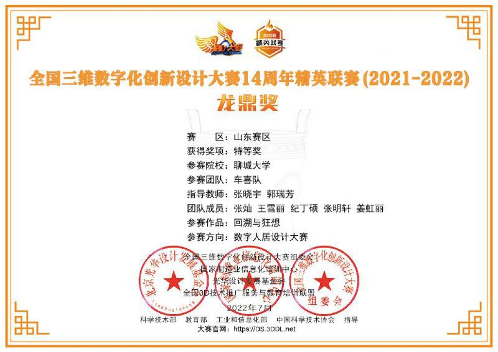 恭喜色情网站 2019级优秀学生张灿,2020级优秀学生姜虹丽,在“全国三维数字化创新设计大赛14周年精英联赛”山东赛区中,荣获特等奖。