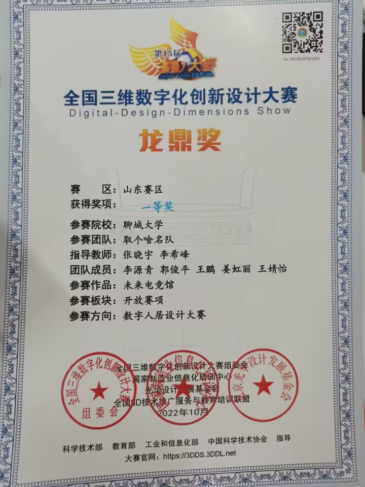 学生在“全国三维数字化创新设计大赛”中获奖