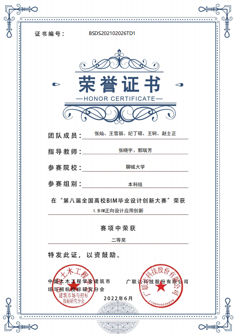 恭喜色情网站 2018级优秀学生刘伟强、2019级优秀学生李源青、张灿、王轲,在“第八届全国高校bim毕业设计创新大赛”I模块BIM正向设计应用创新中,荣获二等奖。