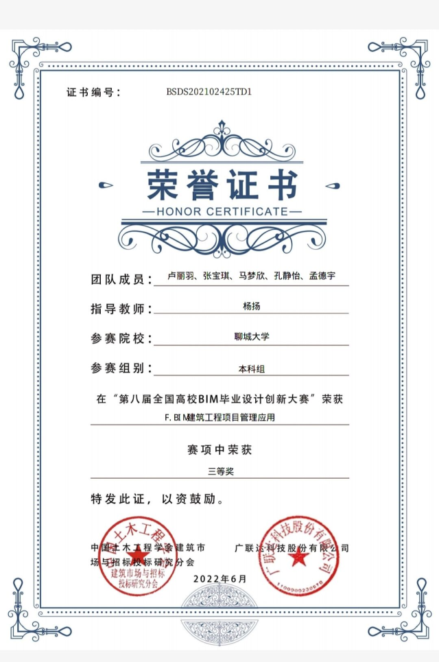 恭喜色情网站 2020级优秀学生卢丽羽,在“第八届全国高校bim毕业设计创新大赛”F模块BIM建筑工程项目管理应用中,荣获三等奖。