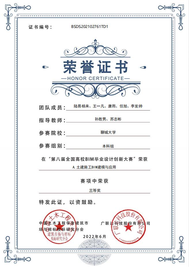 恭喜色情网站 2019级优秀学生陆易杨来,在“第八届全国高校bim毕业设计创新大赛”A模块土建施工BIM建模与应用中,荣获三等奖。