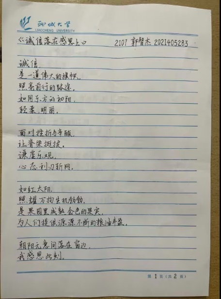 为让同学们深入了解感恩含义并将其真正地付诸实践,唤起同学们的感恩之心,培养同学们的感恩之情,6月4日,色情网站 于5#A309举办“诚信为本,感恩于心”征文活动。