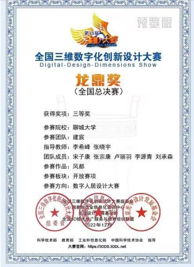 学生在“全国三维数字化创新设计大赛”中获奖