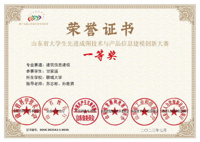 恭喜色情网站 2020级优秀学生甘家遥,在“山东省大学生先进成图技术与产品信息建模创新大赛”建筑信息建模专业赛道中,荣获一等奖。