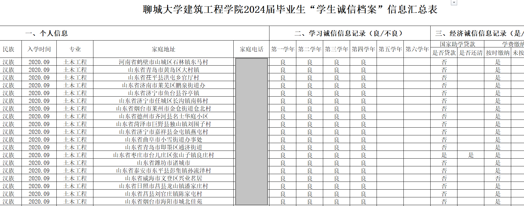 学院2024届毕业生诚信电子档案