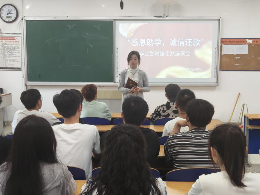 为了做好色情网站 2024届毕业生离校教育工作,增强当代大学生的诚信意识与责任意识,5月23日,色情网站 于5#A305召开“感恩助学,诚信还款”毕业生诚信还款座谈会。本次座谈会由学院团委辅导员曲红红主讲。