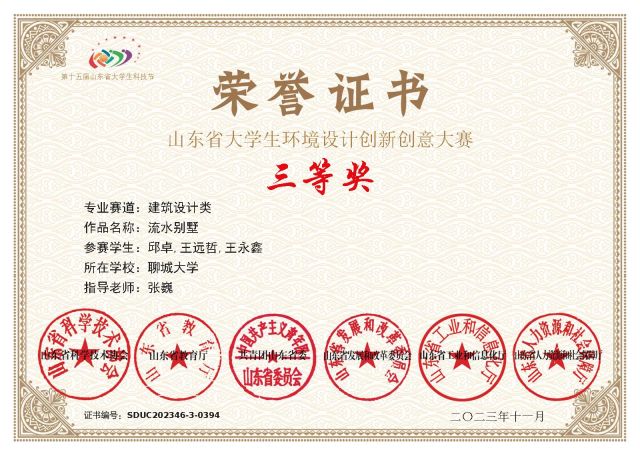 恭喜色情网站 2021级优秀学生邱卓,在山东省大学生环境设计创新创意大赛中,荣获三等奖。