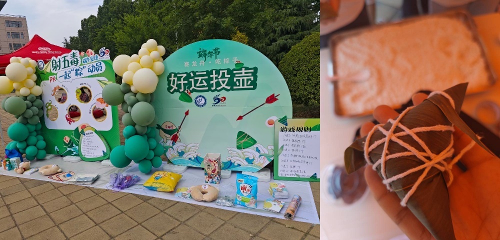 学生参与包粽子、编彩绳、画团扇、绘彩蛋、点雄黄、飞花令、趣五投、 祈愿颂、香韵集、竹艾韵10个活动,同学们在老师与志愿者的指导下,纷纷上手尝试,折粽叶、填糯米、裹扎绳,忙得不亦乐乎,现场欢声笑语不断,大家不仅体验到了传统技艺的乐趣,更在相互协作中增进了情谊。