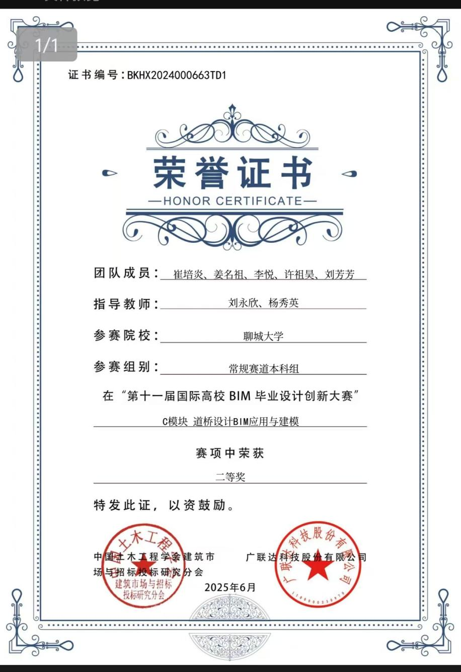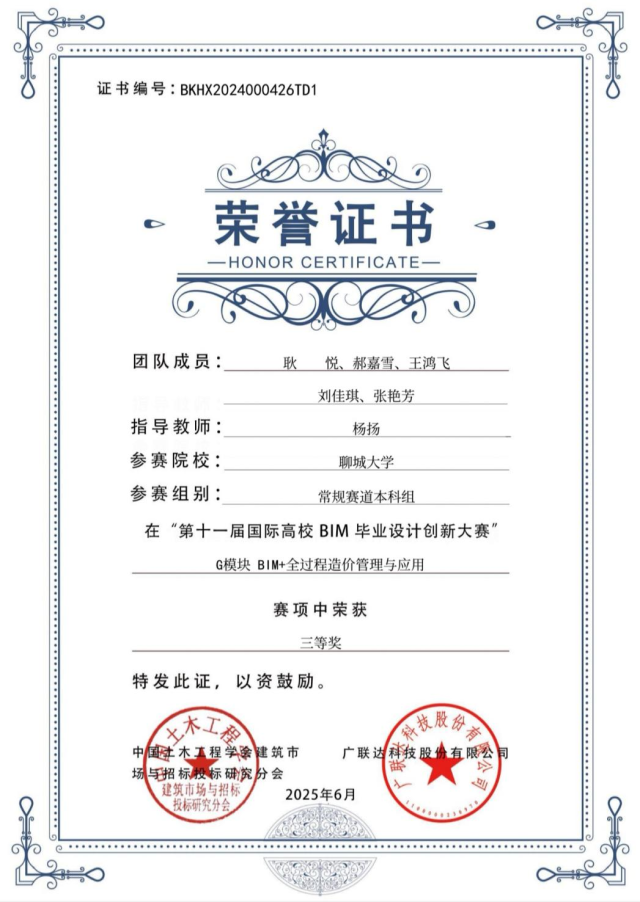 恭喜色情网站 2024级优秀学生刘芳芳在第十一届“国际高校BIM毕业设计创新大赛”中,荣获团队二等奖,2023级优秀学生张艳芳、2023级优秀学生鲁守金荣获团队三等奖。