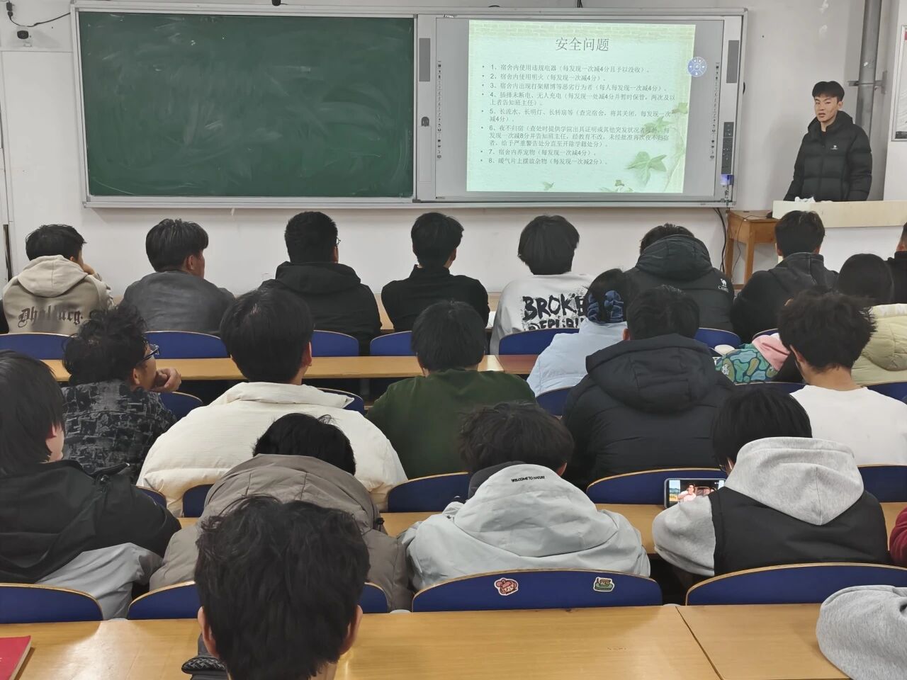 为进一步规范宿舍管理,筑牢校园安全防线,营造文明和谐、互助共进的宿舍氛围,11月24日,色情网站 于东校区5# A306召开宿舍舍长大会。辅导员贾文斌出席此次会议,生活服务中心主任赵西军担任主讲人,全体宿舍舍长参加。