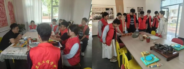 随后,同学们来到了道口铺非遗博物馆进行参观。在非遗传承人的指导下,成员们深入了解了剪纸、泥砚等非遗项目的制作工艺与文化内涵。从精湛的剪纸技艺到独具特色的传统泥砚,每一种非遗文化都像是一颗璀璨的明珠,闪耀着乡村文脉的光芒。同学们与非遗传承人面对面交流,探讨如何通过现代设计理念与技术手段,推动非遗文化的创新性发展与传播。