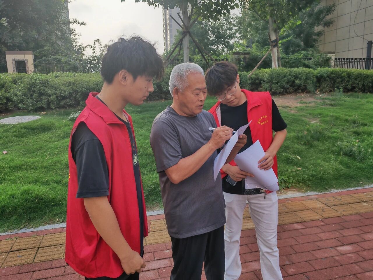 同学们分组发放调查问卷,围绕“社区历史变迁、文化传承认知、居民生活需求”等方面设计问题。面对长辈,同学们以“聆听者”身份进行交流,从社区变迁聊到时代发展,记录长辈口中的“光辉岁月”;面对青少年,同学们化身为“宣讲员”,以通俗化表达解读地方史与奋斗精神,借助互动问答激发青少年对文化历史的兴趣,生动诠释了“问史”与“传薪”的双向意义。同学们纷纷表示,问卷调查不仅是数据收集,更是一次“青春与岁月的对话”——不仅了解到长辈对于时代变迁的见解,也触摸到社区发展的脉搏。后续同学们将对调研数据整理分析,形成实践报告反馈社区,持续推动“青春服务基层、文化薪火相传”的长效机制。