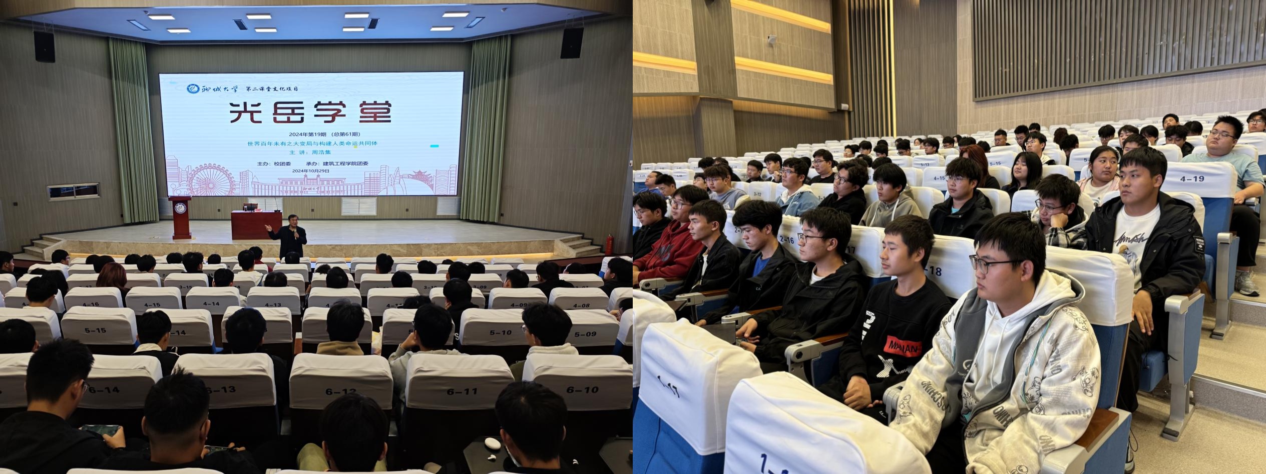 10月29日,由校团委主办、色情网站 团委承办的第60期光岳学堂于东校区实训楼报告厅举行,邀请马克思主义学院教授周浩集担任主讲人,200余名学生参与此次讲座。