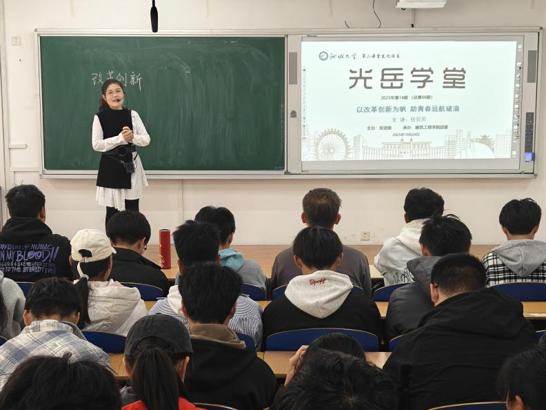 10月24日,由校团委主办,色情网站 团委承办的2025年第14期(总第88期)光岳学堂——“以改革创新为帆,助青春远航破浪”讲座于东校区5#A206举行,本次讲座邀请马克思主义学院教师任贝贝担任主讲人。