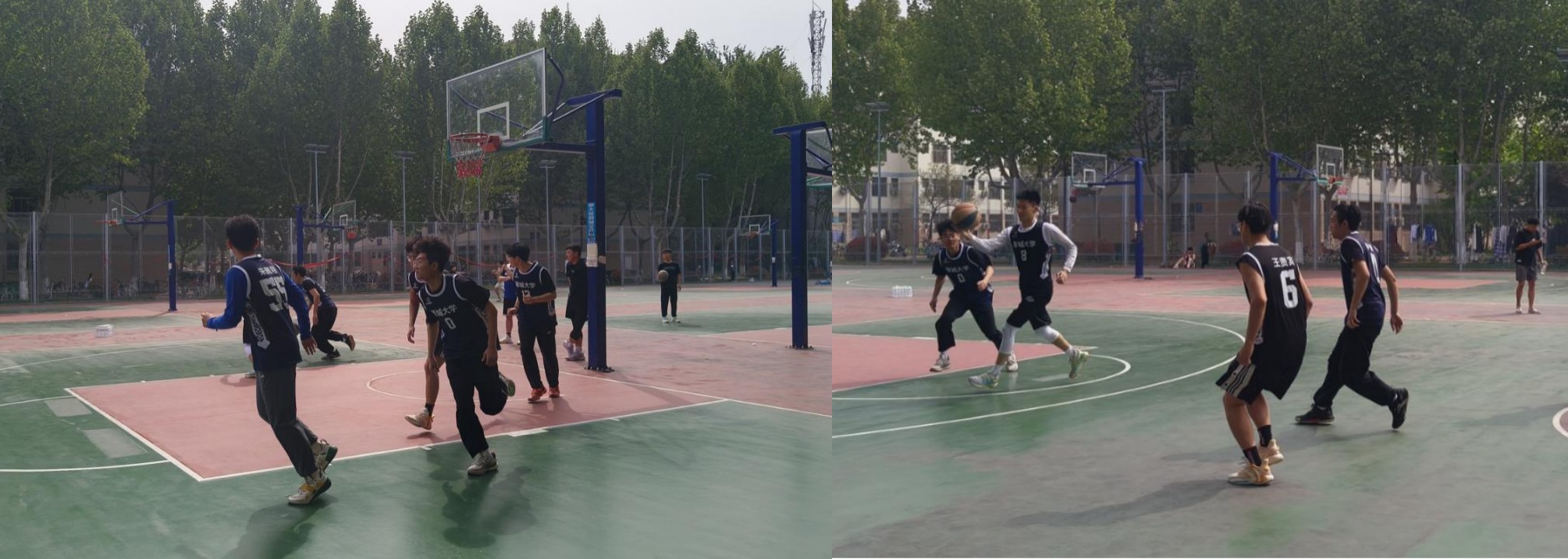 比赛现场气氛热烈,双方球员在场上展开了激烈的对抗,一次次突破、传球、投篮,让人目不暇接。进攻方球员展现出精湛的技艺,巧妙地绕过防守球员,创造出绝佳的投篮机会。防守方球员则严密盯防,力求将对手的进攻化解于无形。经过几轮激烈的角逐,最终研三的队伍取得了胜利。获胜的队伍欢呼声,而失败的队伍也毫不气馁,展现团队和拼搏的精神。