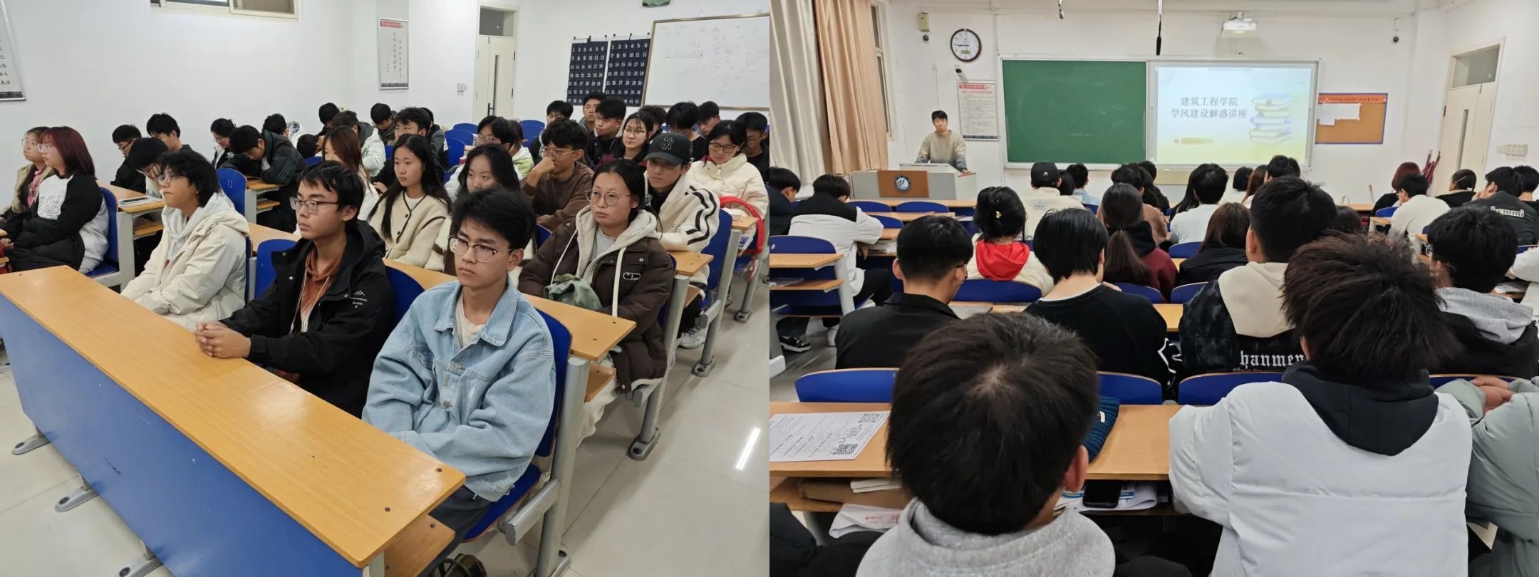 杜晓同围绕学风建设展开,阐述学风建设的重要意义,鼓励同学们共同努力,营造良好学习氛围。他讲到,同学们要制定好自己的学业规划,参与各类学科讲座拓宽知识面,参加实践项目、学科竞赛以及科研活动,以此提升专业技能与综合素养,同时要找到自身的兴趣点,将其与专业学习相结合,设立短期和长期目标,保持学习的热情。此外,杜晓同分享了自身的学习方法,他建议同学们课前提前预习,带着问题上课,在课堂上紧随老师的步伐。这种方法可以减缓同学们在学习上的压力和提高学习效率。同学们纷纷表示对学风建设有更透彻的了解,在今后的学习中将更加认真严谨,共建良好的学风氛围。