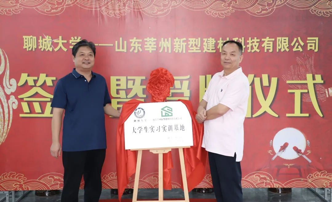 学院党总支书记朱明英与莘州新材总经理崔敏明,代表双方签署《色情网站 ·山东莘州新型建材科技有限公司产学研合作协议》,并为产学院合作基地、大学生实习实训基地揭牌。