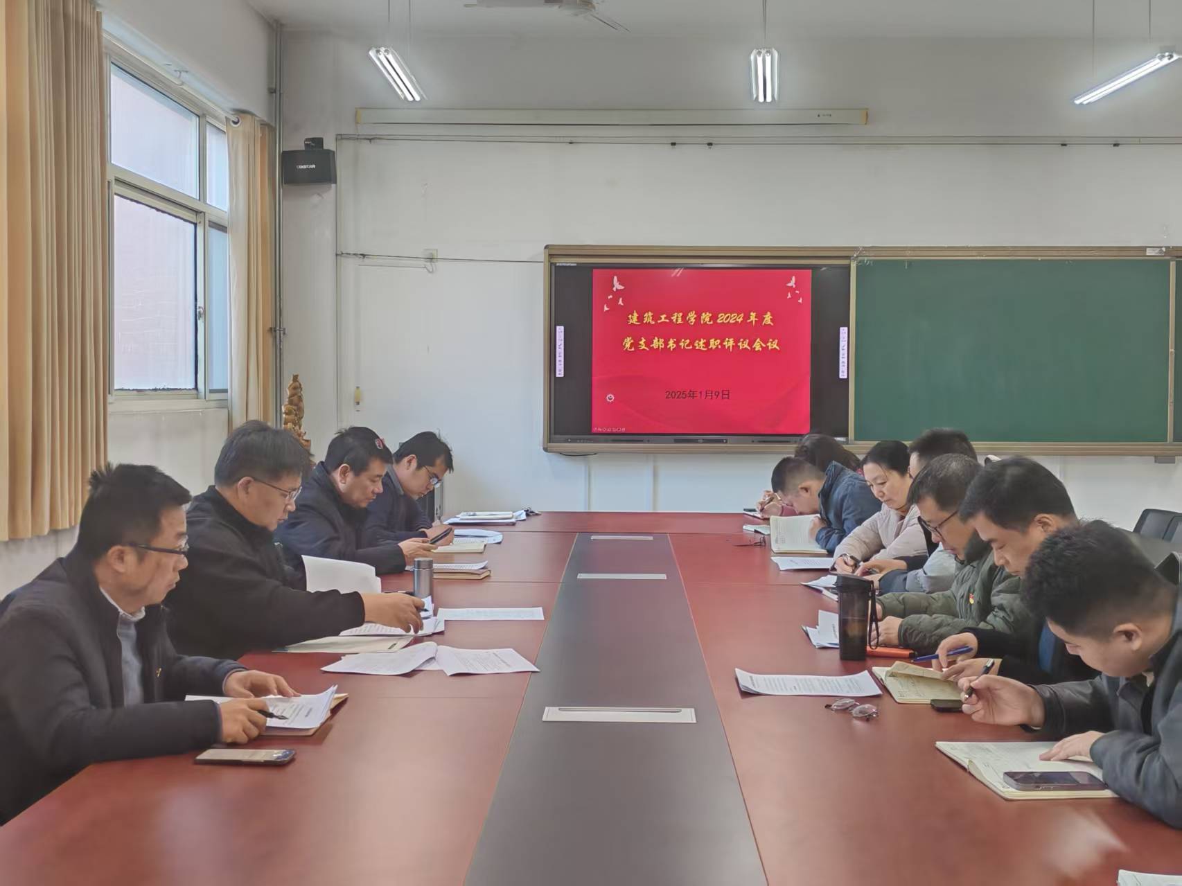 1月9日,学院在207会议室召开党支部书记履行全面从严治党述责述廉和抓基层党建述职评议会议,学院领导班子成员、党支部书记、支部委员、师生代表参加,党委书记宗传军主持会议。