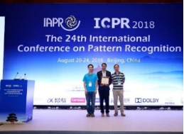 图 CVPR19报告现场、TPAMI22论文截图、CCCV17最佳科学论文奖和颁奖现场、ICPR18最佳科学论文奖和颁奖现场、ISMAR19的VSLAM挑战赛第一名和颁奖现场。